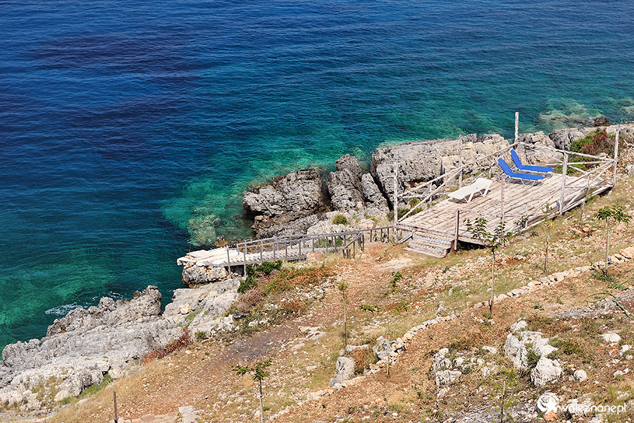 Zakynthos. Taras słoneczny i wejście do wody na cyplu Mikro Nisi.