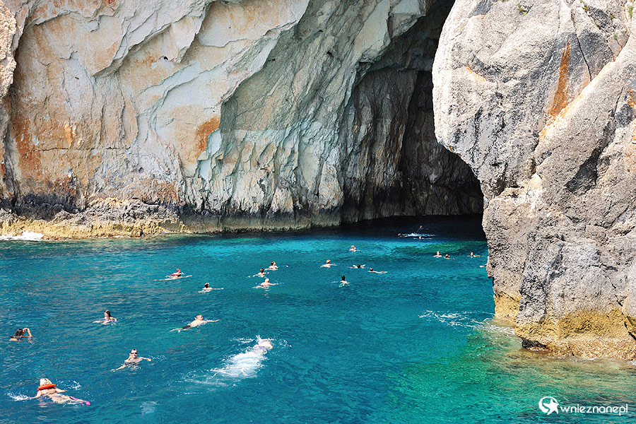 Zakynthos. Klifowe wybrzeże na wysokości Keri pełne jest małych i dużych jaskiń.
